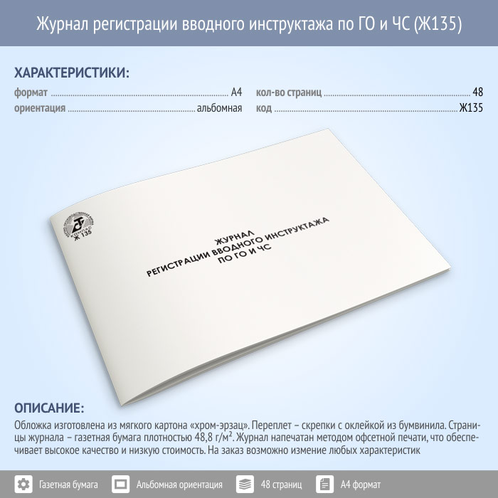 Журнал регистрации вводного инструктажа по ГО и ЧС (48 стр., Ж135) в Химках купить