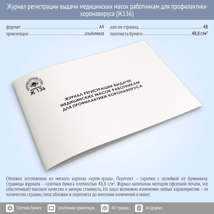 Журнал регистрации выдачи медицинских масок работникам для профилактики коронавируса (48 стр., Ж136) в Химках купить