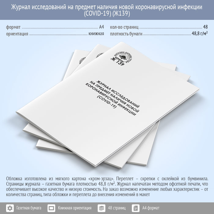 Журнал исследований на предмет наличия новой коронавирусной инфекции (COVID-19) (48 стр., Ж139) в Химках купить