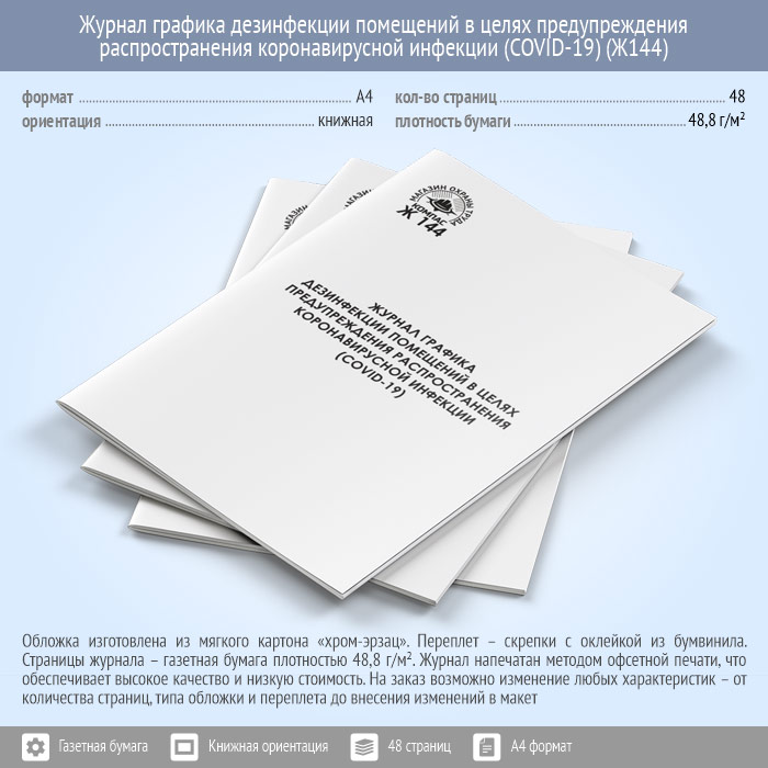 Журнал графика дезинфекции помещений в целях предупреждения распространения коронавирусной инфекции (COVID-19) (48 стр., Ж144) в Химках купить