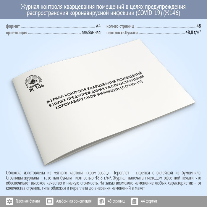Журнал контроля кварцевания помещений в целях предупреждения распространения коронавирусной инфекции (COVID-19) (48 стр., Ж146) в Химках купить