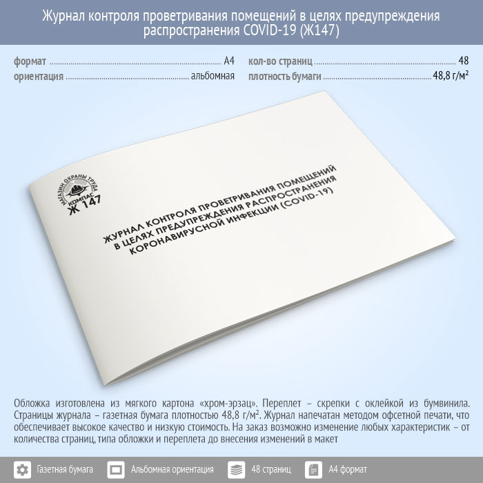 Журнал контроля проветривания помещений в целях предупреждения распространения коронавирусной инфекции (COVID-19) (48 стр., Ж147) в Химках купить