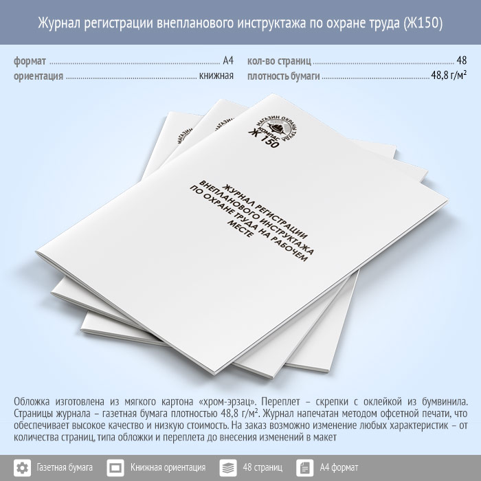 Журнал регистрации внепланового инструктажа по охране труда (48 стр., Ж150) в Химках купить