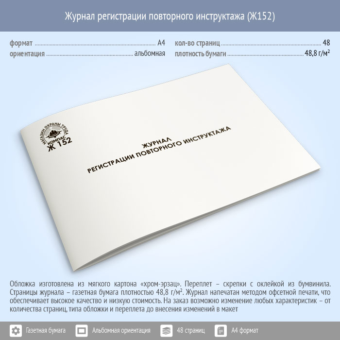Журнал регистрации повторного инструктажа (48 стр., Ж152) в Химках купить