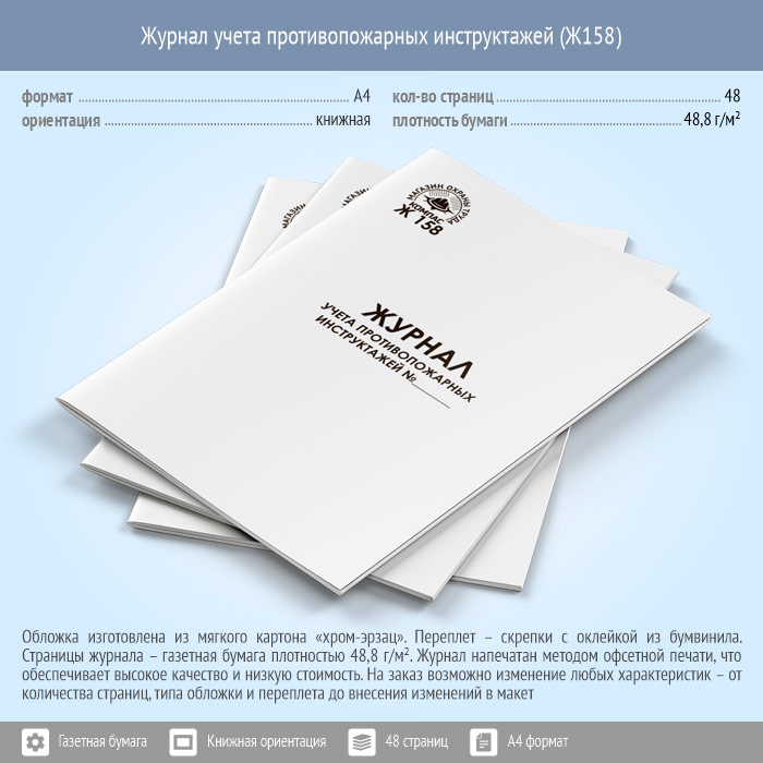 Журнал учета противопожарных инструктажей (48 стр., Ж158) в Химках купить