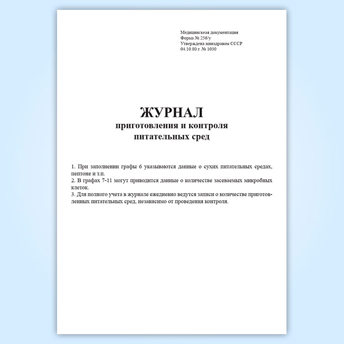 Журнал приготовления и контроля питательных сред (форма 256/у) в Химках купить