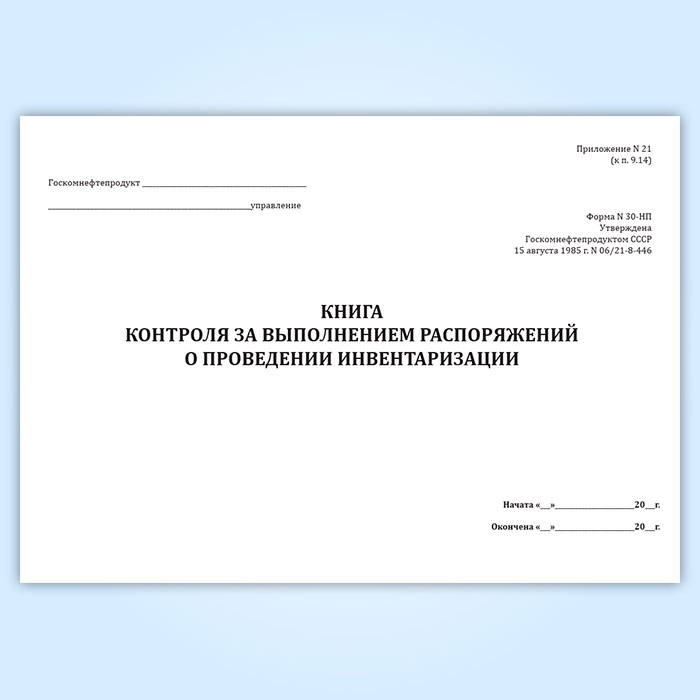 Книга контроля за выполнением распоряжений о проведении инвентаризации (форма № 30-НП) в Химках купить