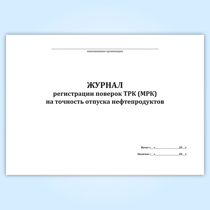 Журнал регистрации поверок ТРК (МРК) на точность отпуска нефтепродуктов в Химках купить