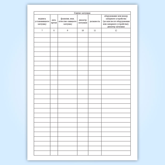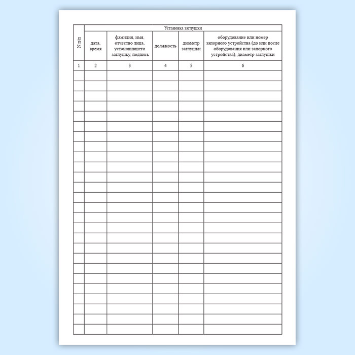 Журнал установки и снятия заглушек в Химках купить