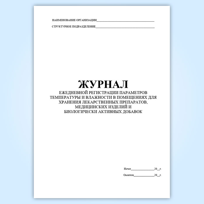 Журнал ежедневной регистрации параметров температуры и влажности в помещениях для хранения лекарственных препаратов, медицинских изделий и биологически активных добавок в Химках купить