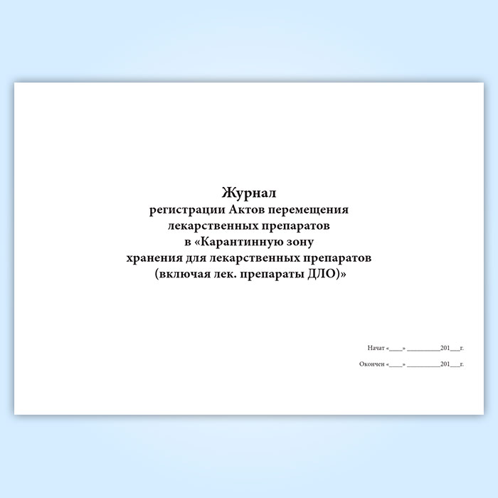 Журнал регистрации Актов перемещения лекарственных препаратов в «Карантинную зону хранения для лекарственных препаратов (включая лек. препараты ДЛО)» в Химках купить