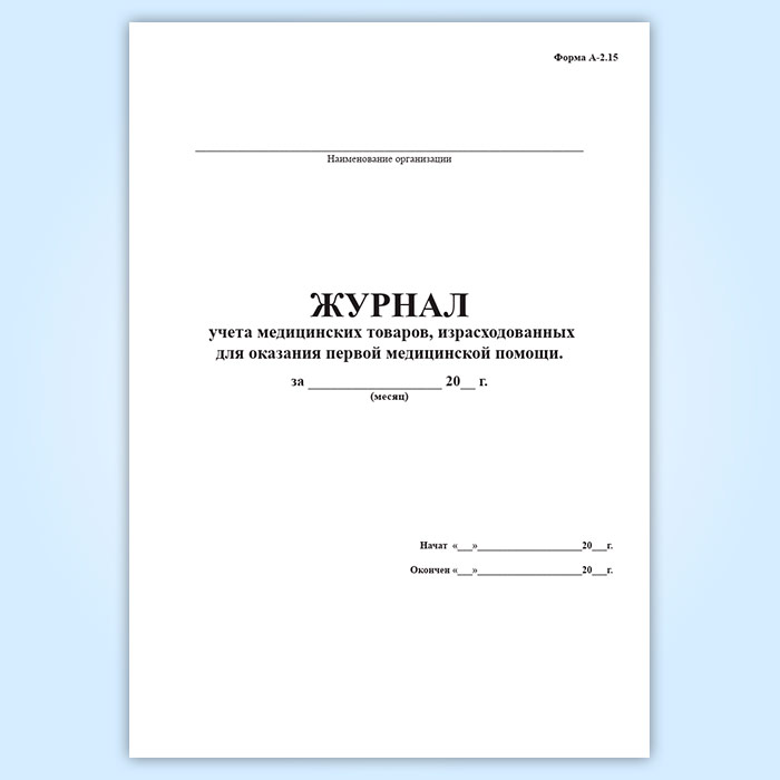 Журнал учета медицинских товаров, израсходованных для оказания первой медицинской помощи (форма А-2.15) в Химках купить