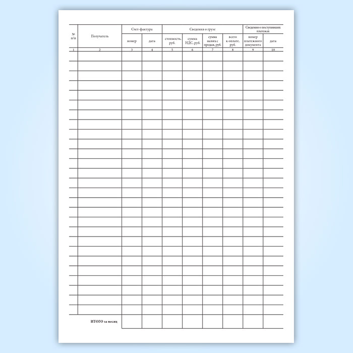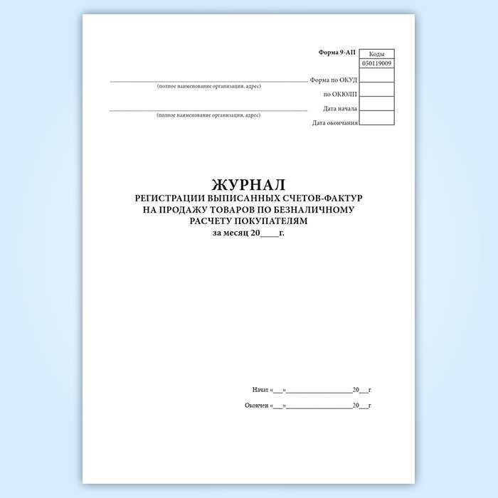 Журнал регистрации выписанных счетов-фактур на продажу товаров по безналичному расчету покупателям (форма 9-АП) в Химках купить