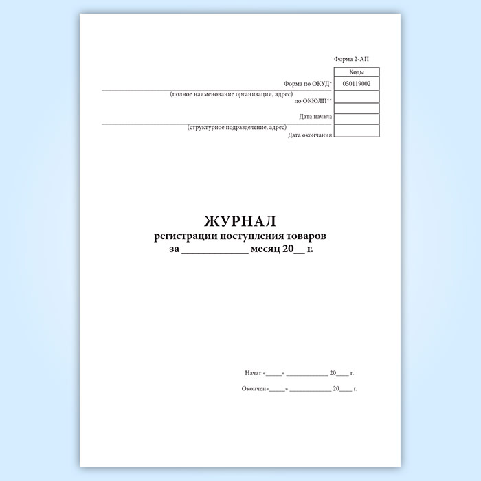 Журнал регистрации поступления товаров (форма 2-АП) в Химках купить