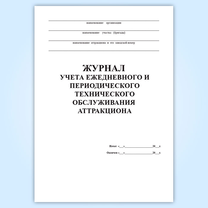 Журнал учета ежедневного и периодического технического обслуживания аттракциона в Химках купить