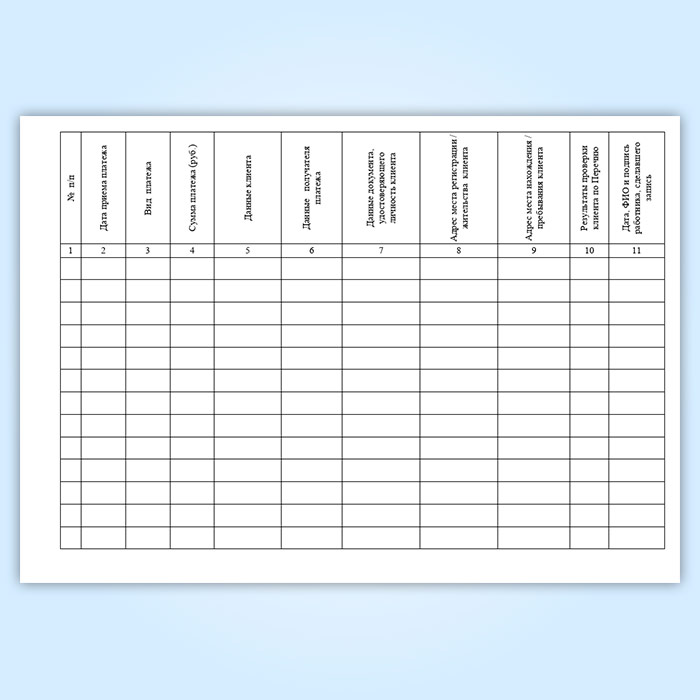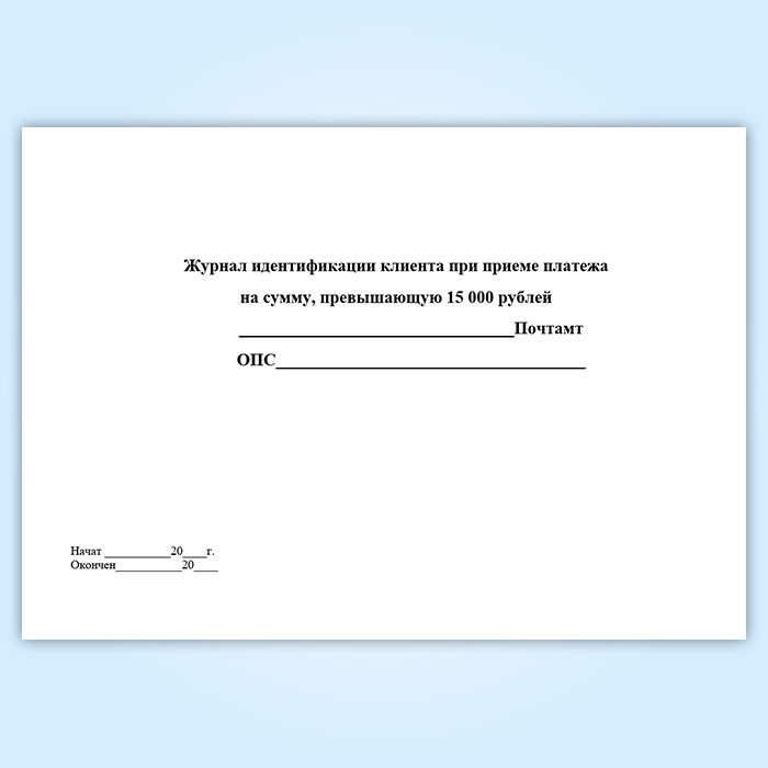Журнал идентификации клиента при приеме платежа на сумму, превышающую 15 000 рублей в Химках купить