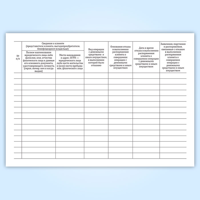 Журнал учета отказов в выполнении распоряжения клиентов о совершении операции с денежными средствами и иным имуществом в Химках купить
