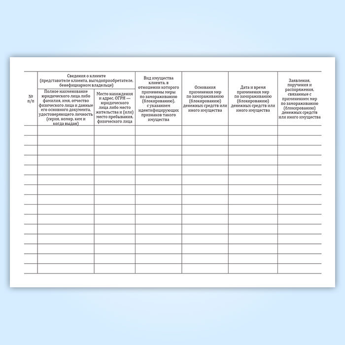 Журнал учета принятых мер по замораживанию (блокированию) денежных средств или иного имущества клиентов в Химках купить