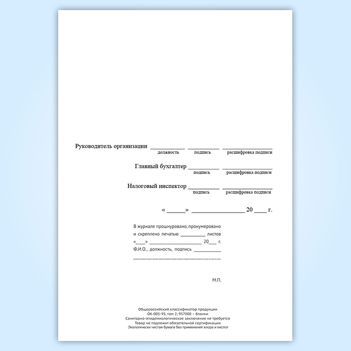 Вы получаете печатную продукцию прошнурованной и c местом для вашей печати в соответствии с действующими нормативными документами: