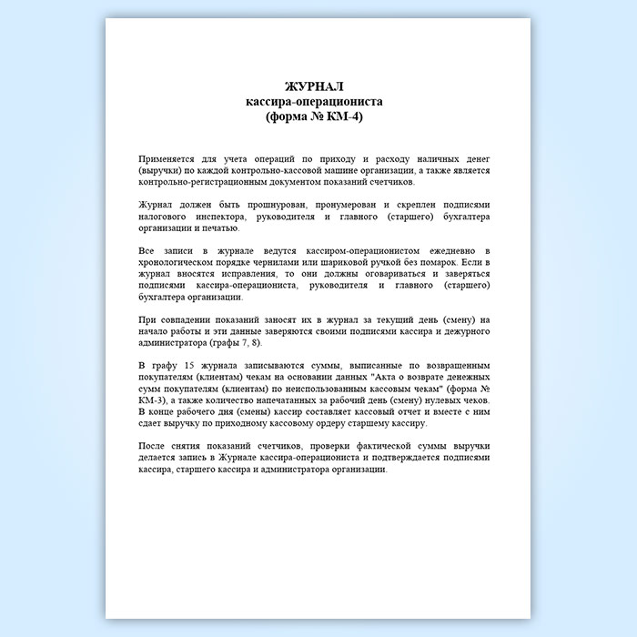 Журнал кассира-операциониста, вертикальный (форма № КМ-4) в Химках купить