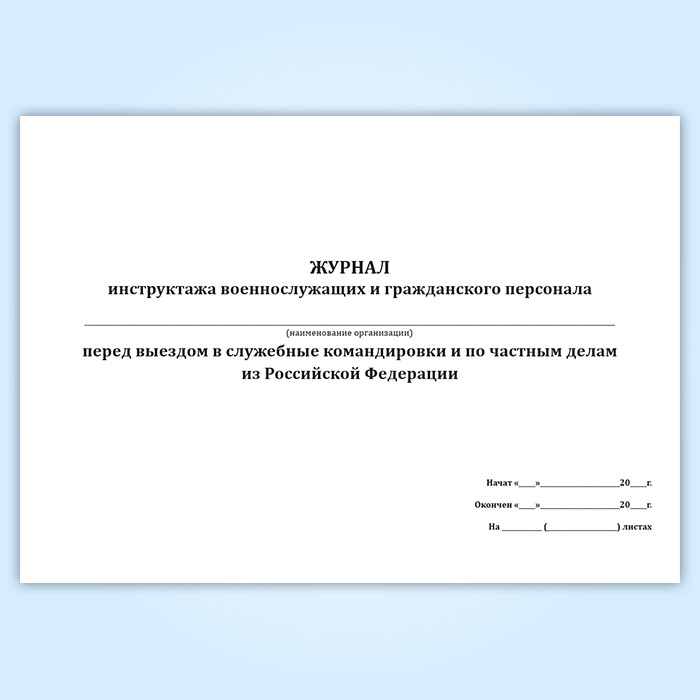 Журнал инструктажа военнослужащих и гражданского персонала перед выездом в служебные командировки и по частным делам из Российской Федерации в Химках купить