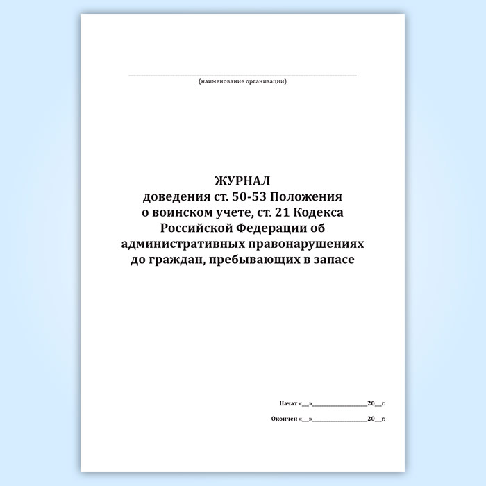 Журнал доведения ст. 50-53 Положения о воинском учете, ст. 21 Кодекса Российской Федерации об административных правонарушениях до граждан, пребывающих в запасе в Химках купить