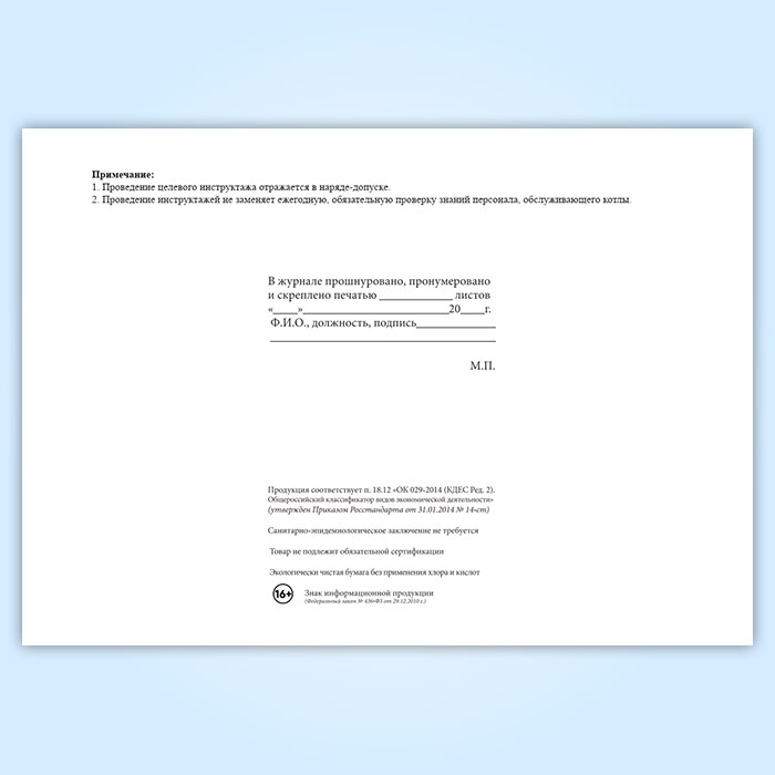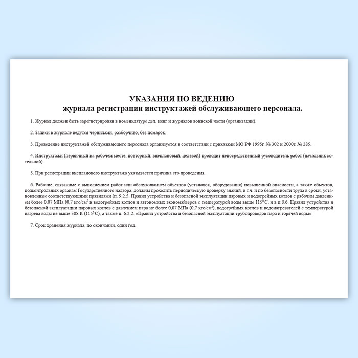 Журнал регистрации инструктажей обслуживающего персонала котельной (для воинских частей, предприятий и организаций) в Химках купить