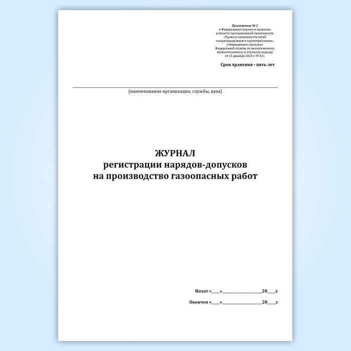Журнал регистрации нарядов-допусков на производство газоопасных работ в Химках купить