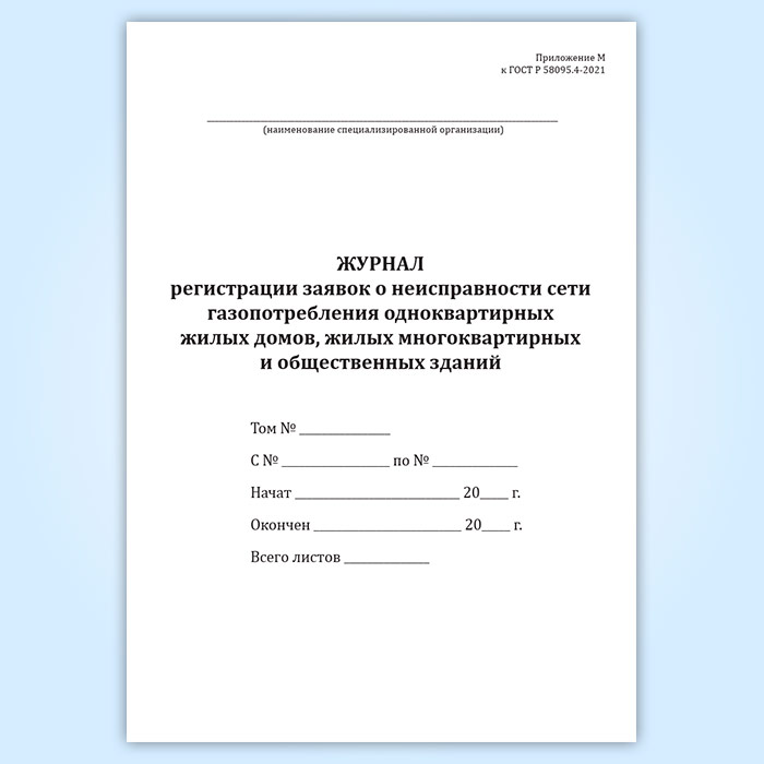 Журнал регистрации заявок о неисправности сети газопотребления одноквартирных жилых домов, жилых многоквартирных и общественных зданий в Химках купить
