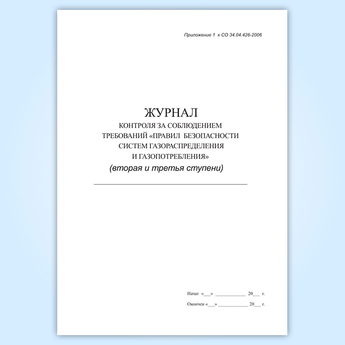 Журнал контроля за соблюдением требований Правил безопасности систем газораспределения и газопотребления (вторая и третья ступени) в Химках купить