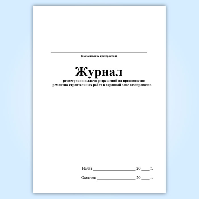 Журнал регистрации выдачи разрешений на производство ремонтно-строительных работ в охранной зоне газопроводов (ГЭГ-14) в Химках купить