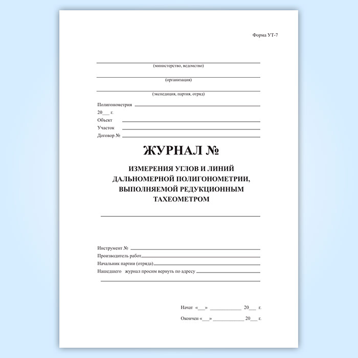 Журнал измерения углов и дальномерной полигонометрии, выполняемой редукционным тахеометром (форма УТ-7) в Химках купить