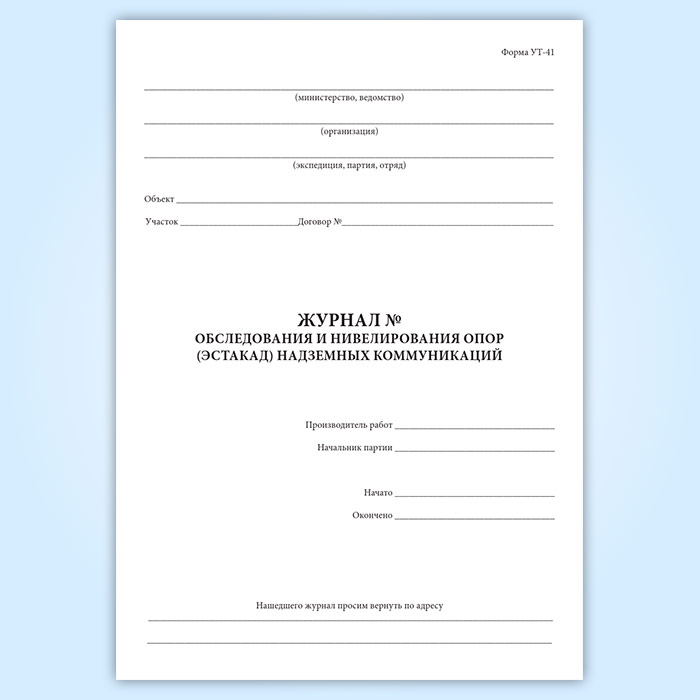Журнал обследования и нивелирования опор (эстакад) надземных коммуникаций (форма УТ-41) в Химках купить