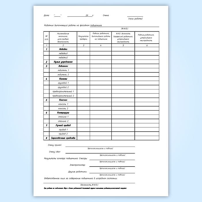 Вахтенный журнал фасадного двухподвесного подъемника в Химках купить