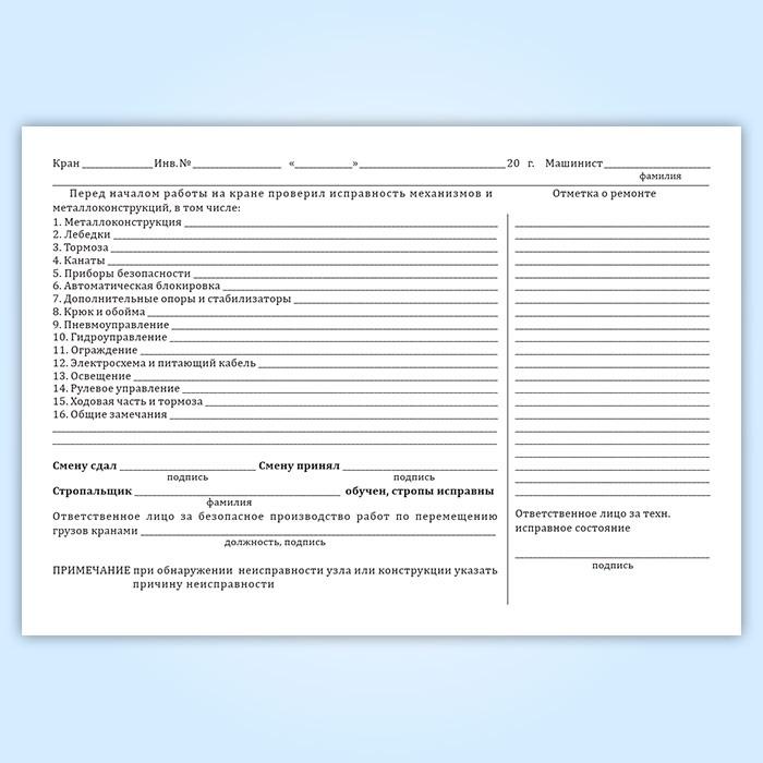 Вахтенный журнал г/п крана в Химках купить
