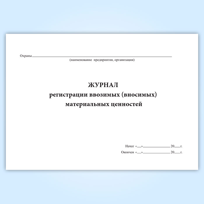 Журнал регистрации ввозимых (вносимых) материальных ценностей в Химках купить