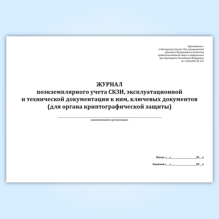 Журнал поэкземплярного учета СКЗИ, эксплуатационной и технической документации к ним, ключевых документов (для органа криптографической защиты) в Химках купить
