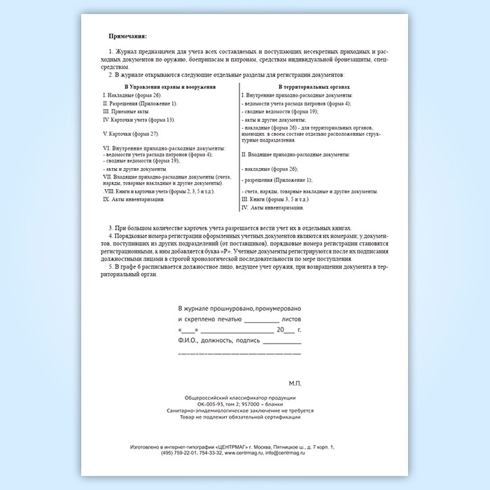Вы получаете печатную продукцию прошнурованной и c местом для вашей печати в соответствии с действующими нормативными документами:
