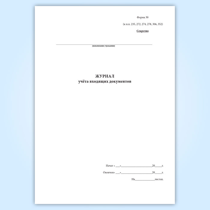 Журнал учета входящих документов (форма № 30) в Химках купить