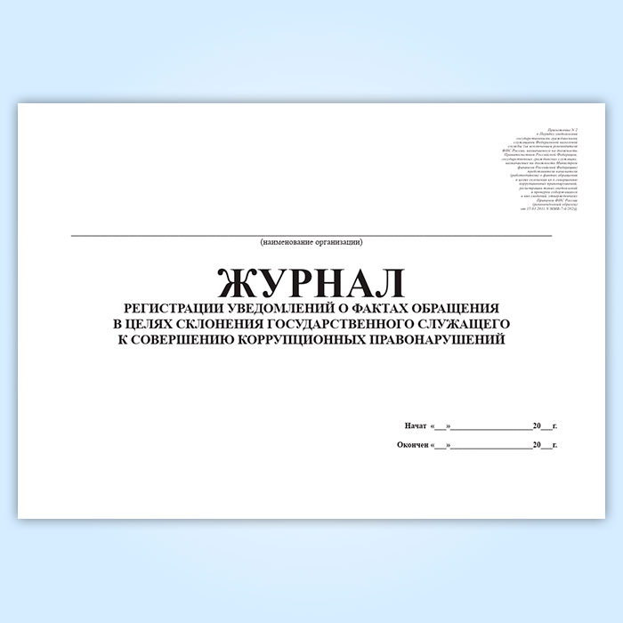 Журнал регистрации уведомлений о фактах обращения в целях склонения государственного служащего к совершению коррупционных правонарушений в Химках купить