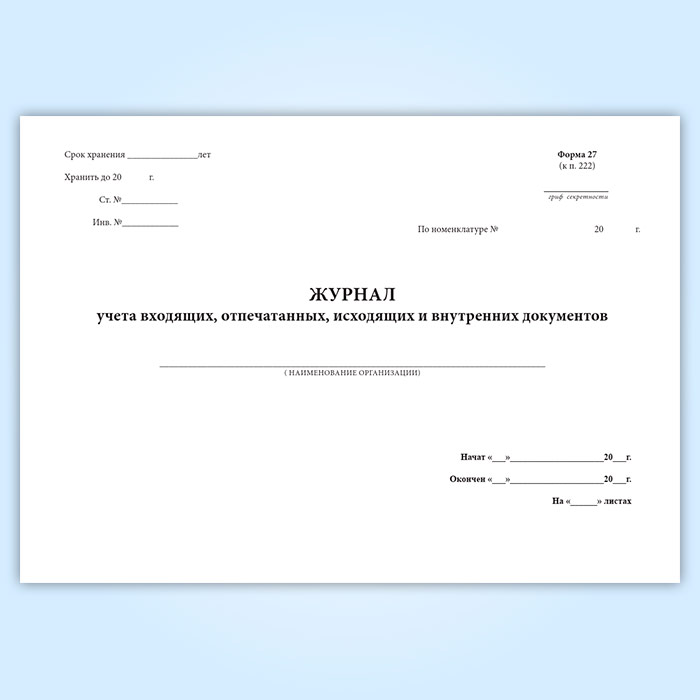Журнал учета входящих, отпечатанных, исходящих и внутренних документов (горизонтальный) в Химках купить
