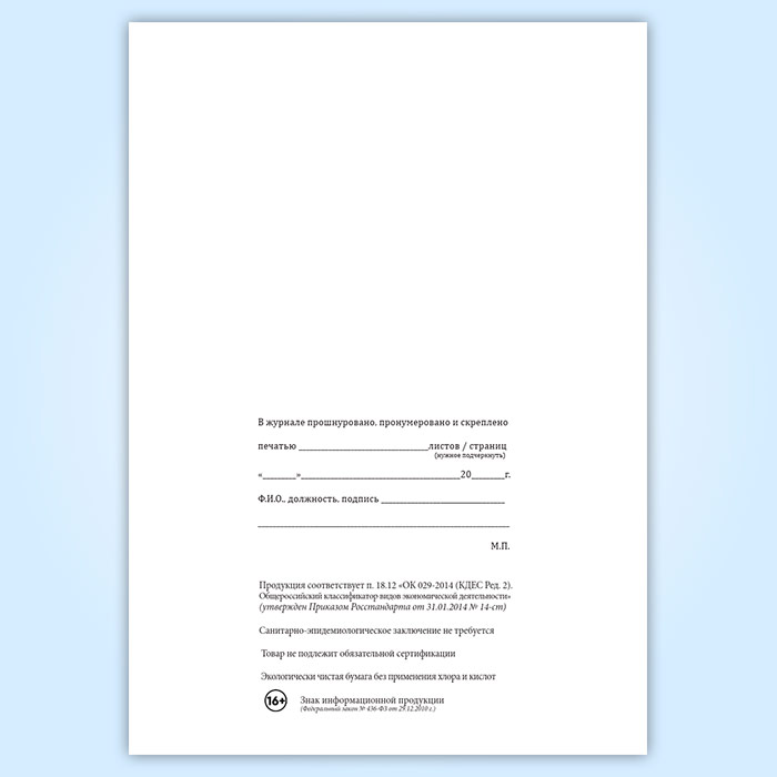 Вы получаете печатную продукцию прошнурованной и c местом для вашей печати в соответствии с действующими нормативными документами: