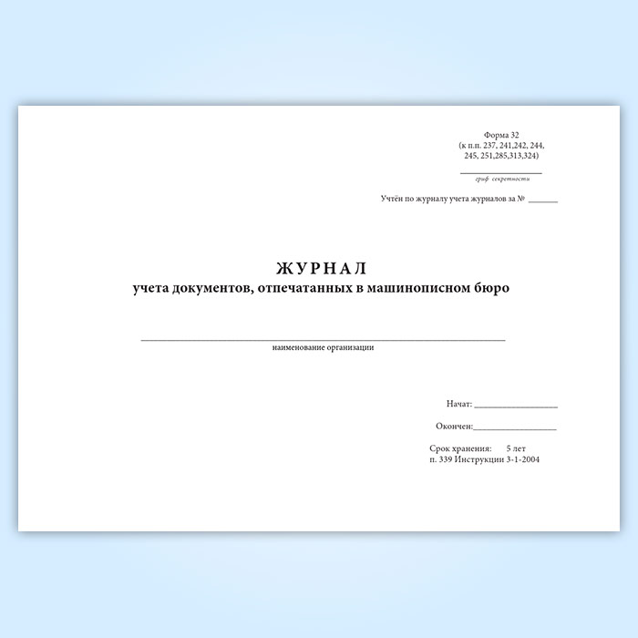 Журнал учета документов, отпечатанных в машинописном бюро (форма 32) в Химках купить