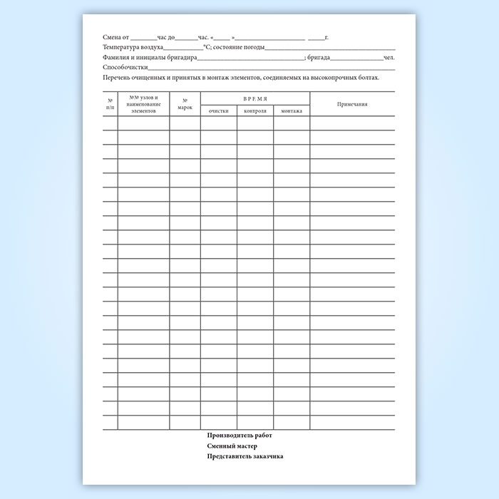 Журнал контроля качества очистки элементов стальных мостовых конструкций с соединениями на высокопрочных болтах в Химках купить