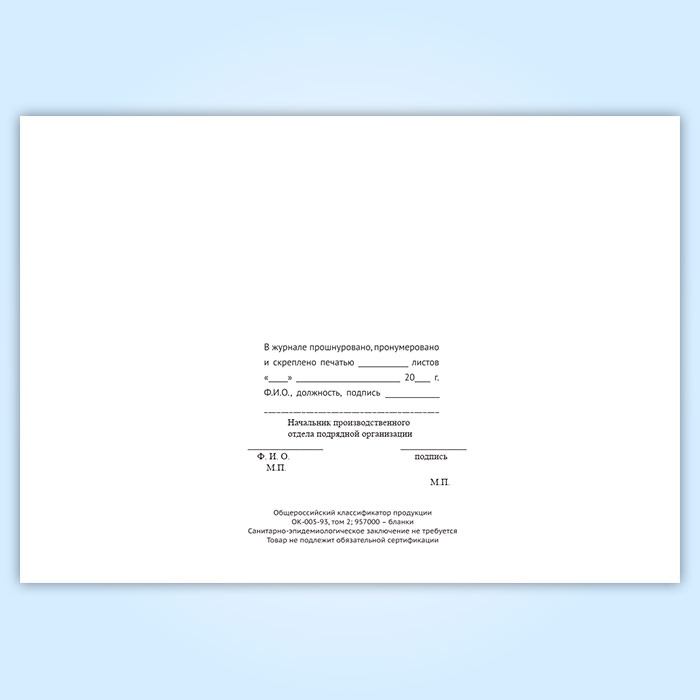 Вы получаете печатную продукцию прошнурованной и c местом для вашей печати в соответствии с действующими нормативными документами: