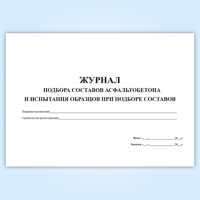 Журнал подбора составов асфальтобетона и испытания образцов при подборе составов в Химках купить