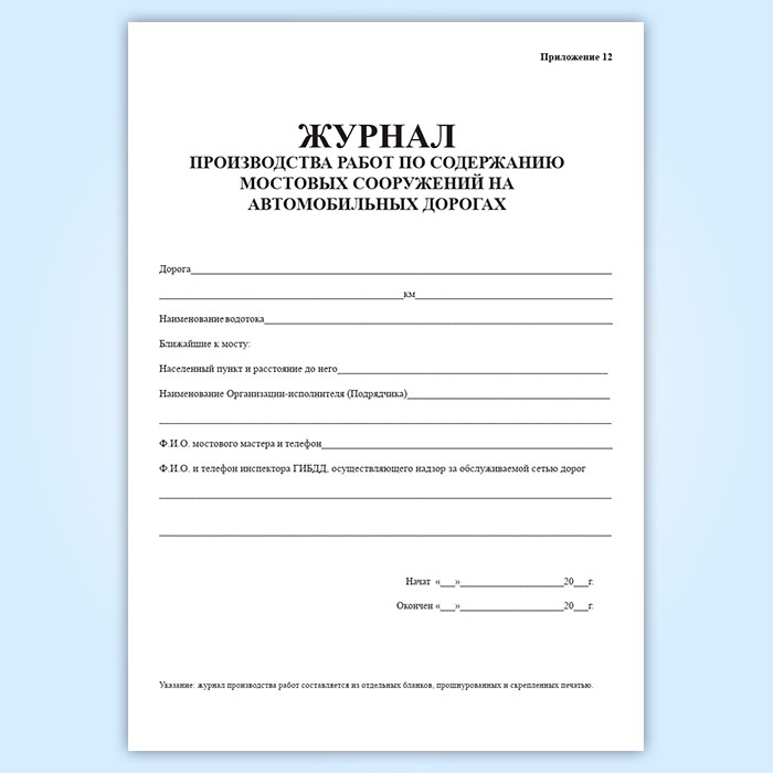 Журнал производства работ по содержанию мостовых сооружений на региональных автомобильных дорогах в Химках купить