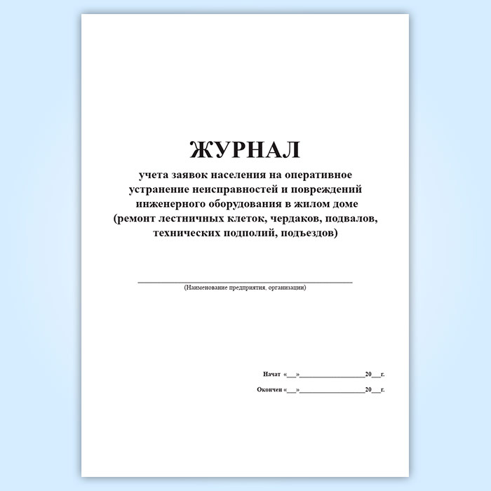 Журнал учета заявок населения на оперативное устранение неисправностей и повреждений инженерного оборудования в жилом доме ремонт лестничных клеток, чердаков, подвалов, технических подполий, подъездов в Химках купить