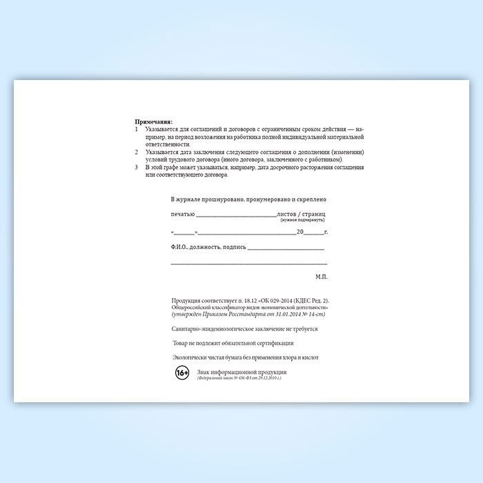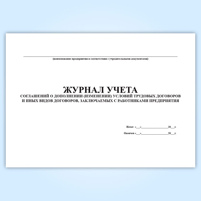 Журнал учета соглашений о дополнении (изменении) условий трудовых договоров и иных видов договоров, заключаемых с работниками предприятия в Химках купить