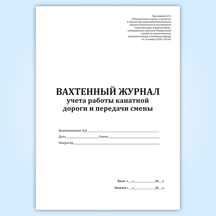 Вахтенный журнал учета работы канатной дороги и передачи смены в Химках купить